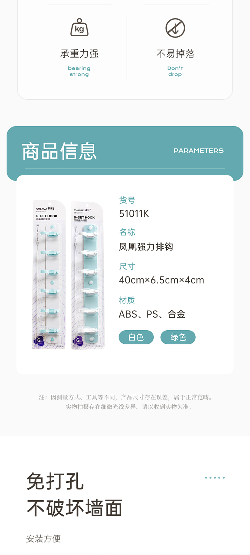 - 商品名稱:茶花(CHAHUA) 51011K 鳳凰強力排鉤粘鉤6鉤/板(單位:板)